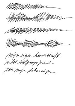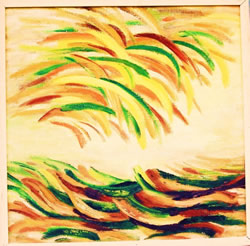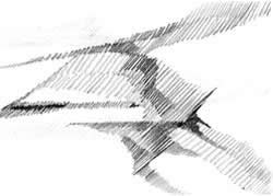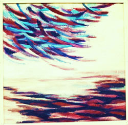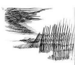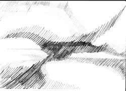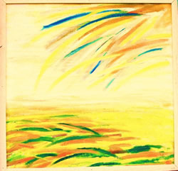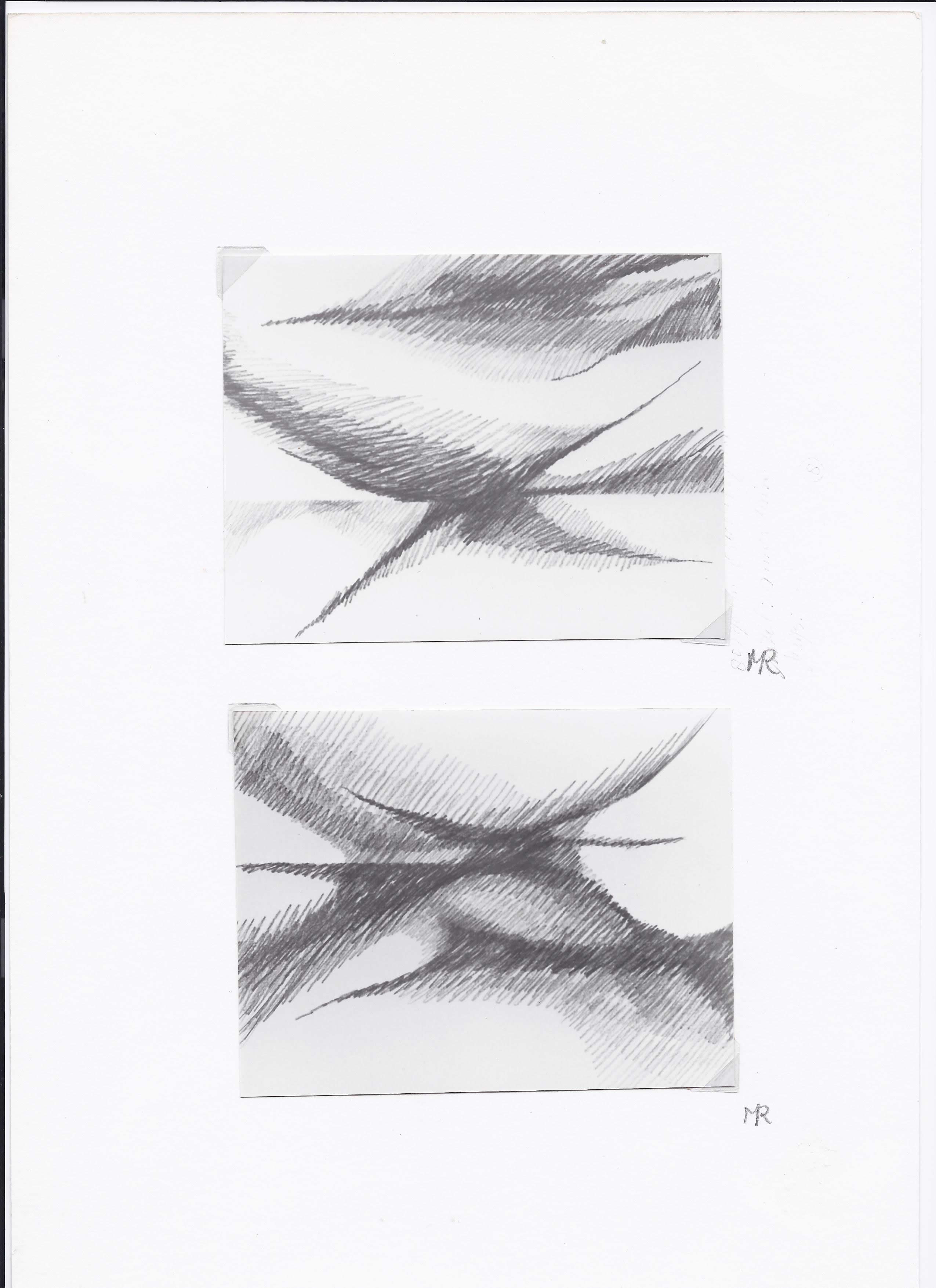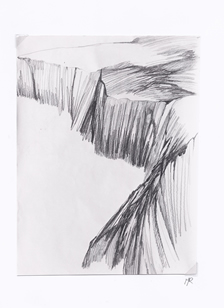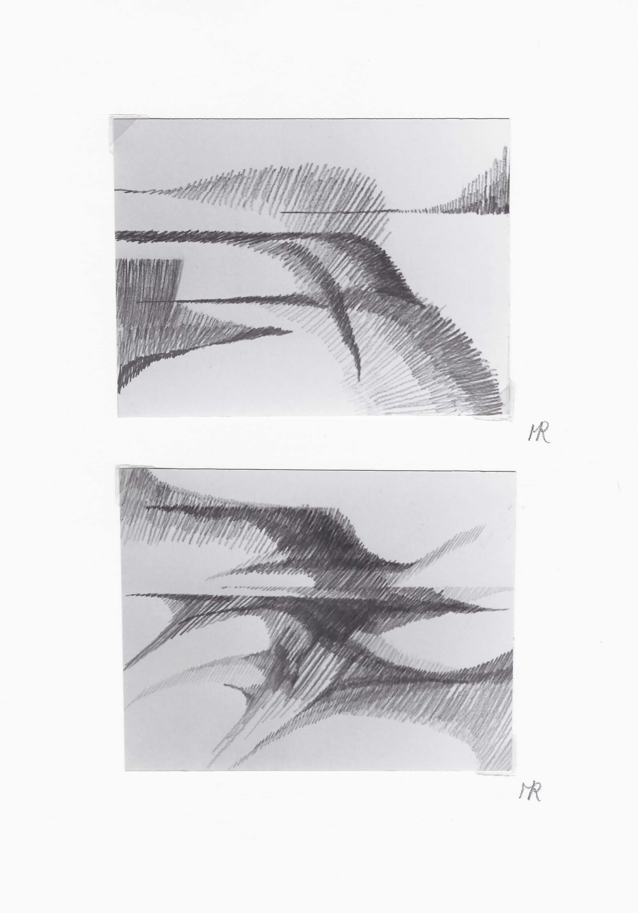 ruimte, vorm, kleur, structuur, ritme en massa. Ik selecteer een van deze elementen uit het geheel en ga daarmee werken. Zo ontstaat een serie werkstukken waarin de ontwikkeling is te zien van het gegeven landschap naar een abstracte vormgeving. |
