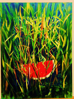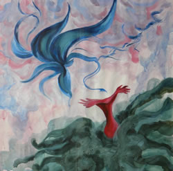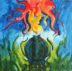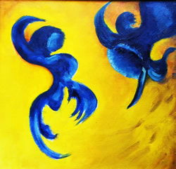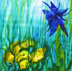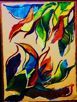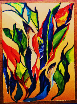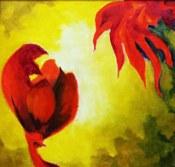 | Verlokkend en verleidend. Zo wil ik deze serie organische vormen noemen. De plantenwereld krijgt menselijke eigenschappen en ontstijgt daardoor aan het alleen maar plant zijn. Net als bij mensen gaat het om aantrekken en afstoten. Dit thema gaf me de mogelijkheid om los en vrij met vorm en kleur om te gaan. |