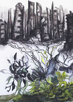 Er was natuur De mens kwam en verdreef de natuur Er kwam stedenbouw Maar… De mens verdween De steden stortten in en de natuur nam weer bezit van land en ruimte.