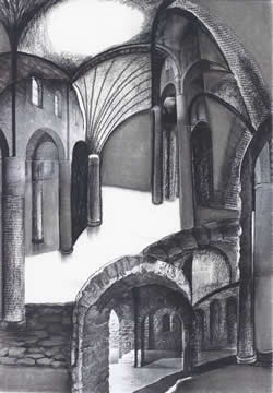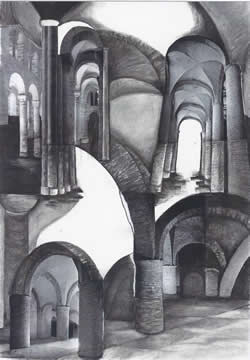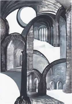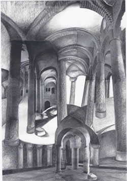 Ik ben gefascineerd door het ritme van zuilen en bogen, ronde vormen en vertikalen, het spel van de ruimte daartussen.