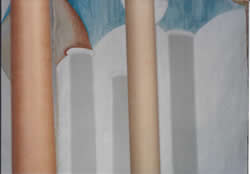 Ook als installatie door cilinders in de ruimte te zetten en hun schaduw op de achterwand te projecteren en daar weer op te tekenen en te schilderen.